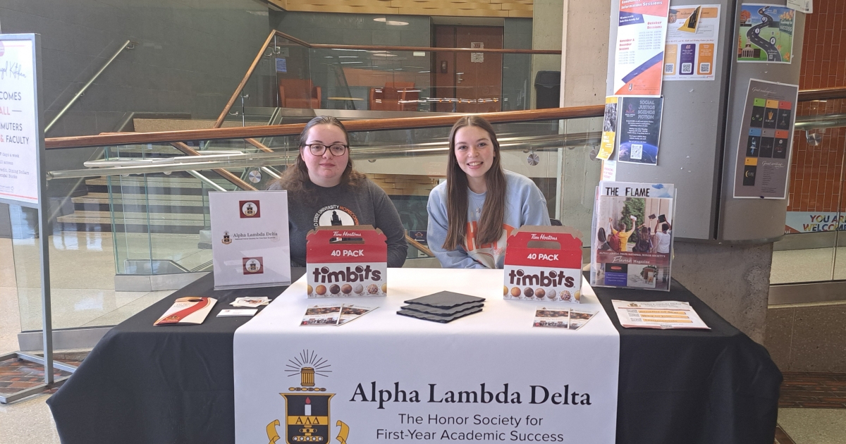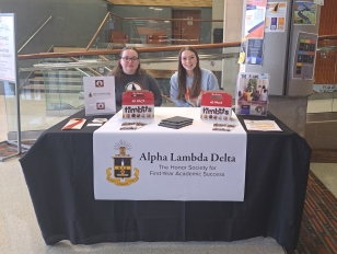 Two ALD members at a tabling event for Alpha Lambda Delta