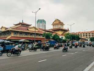 Motorbikes line the streets of Ho Chi Minh City