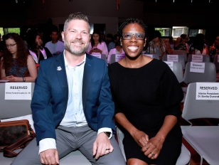 Del Reid with Amitra Wall, Buffalo State interim provost and vice president of academic affairs