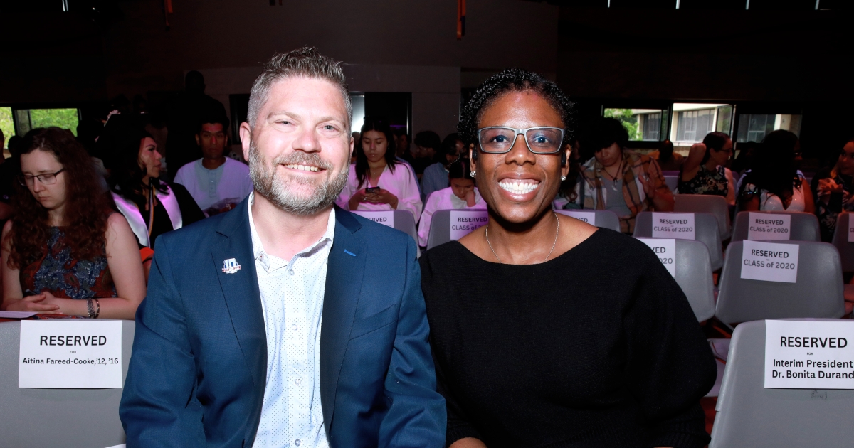 Pictured: Del Reid (left) with Amitra Wall, Buffalo State interim provost and vice president for academic affairs, at the Class of 2020 reunion celebration earlier this year.
